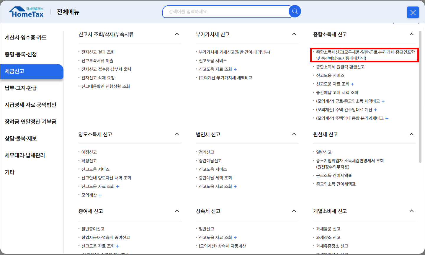 - 국세청 홈택스 접속