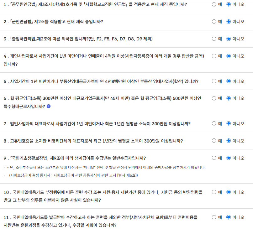 TIP: 소득 기준이 초과되더라도 국가기간·전략산업직종훈련 등 특정 과정은 신청 가능할 수 있으니 확인이 필요합니다.
