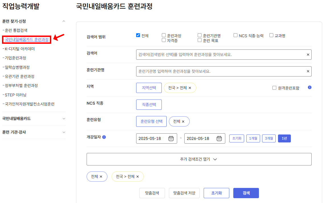 2️⃣ 훈련과정 및 학원 검색