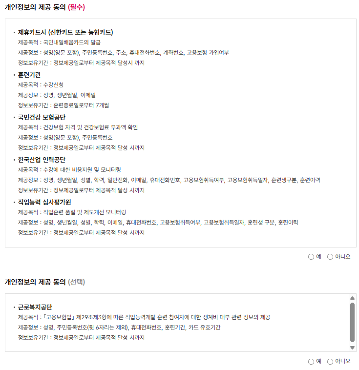 - 일부 과정은 훈련기관의 승인을 받아야 하며, 승인 후 개강일에 맞춰 수강 시작