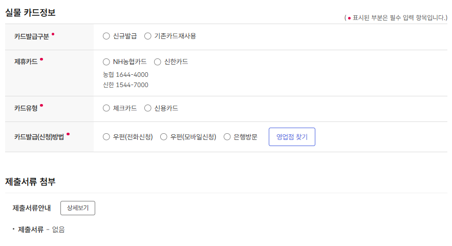 TIP: 신한카드, 농협카드 중 선택하여 실물카드 발급 가능!