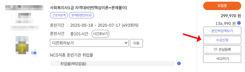 - 원하는 훈련과정을 선택해 ‘수강신청’