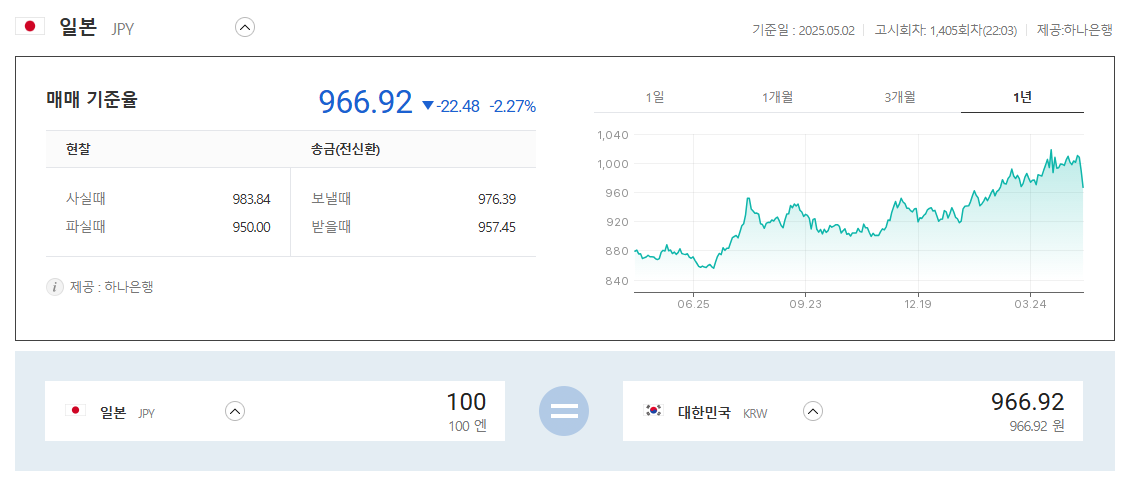 - 2025년 5월 초: 엔/달러 환율 143.65엔 수준으로 하락