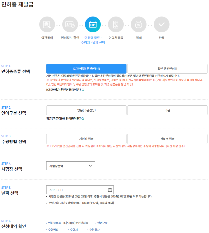 - 운전면허증 재발급은 인터넷, 경찰서, 시험장 중 선택 가능