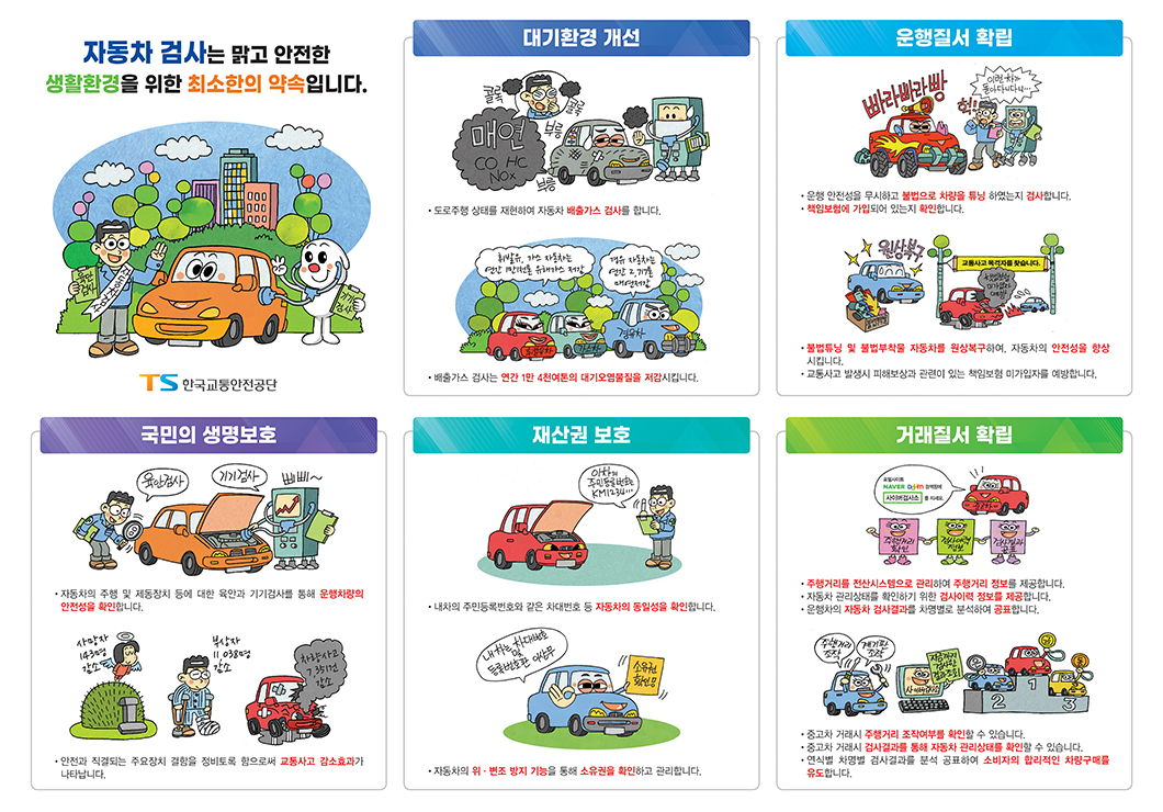 자동차검사는 운행 중인 차량의 안전성과 배출가스 기준 적합 여부를 확인하여 교통사고를 예방하고 환경오염을 줄이기 위한 법적 의무 절차입니다.