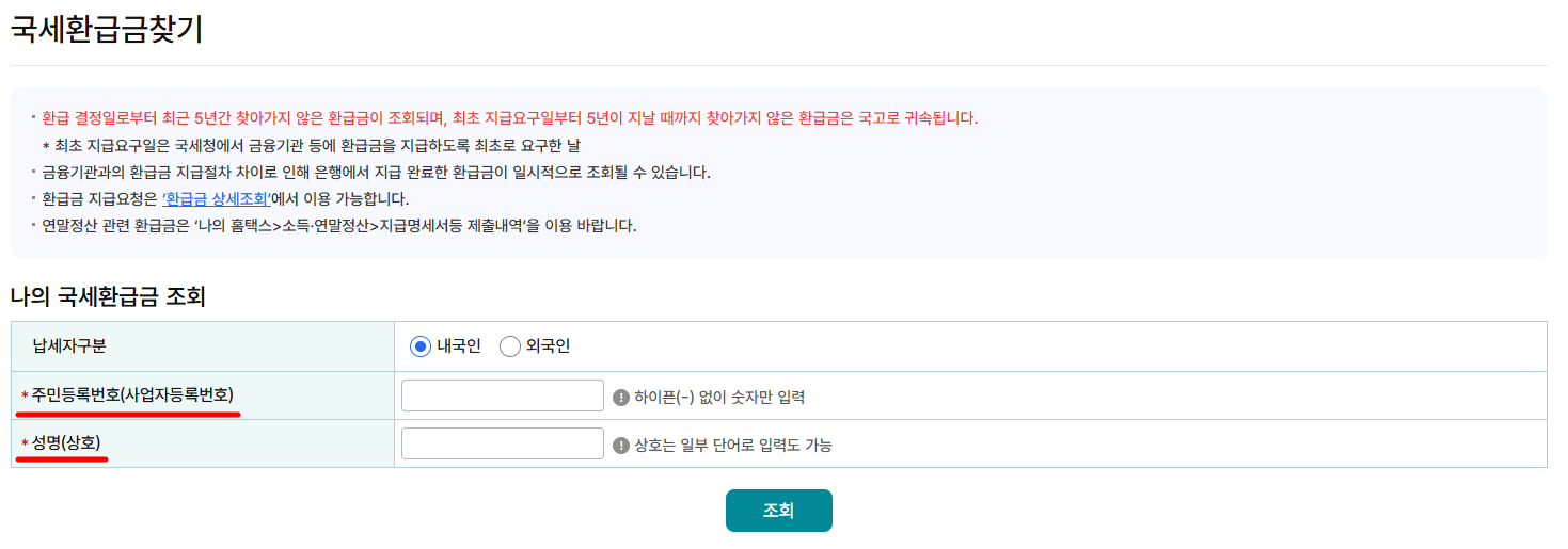 - ‘미환급금 신청’ 메뉴에서도 조회 가능