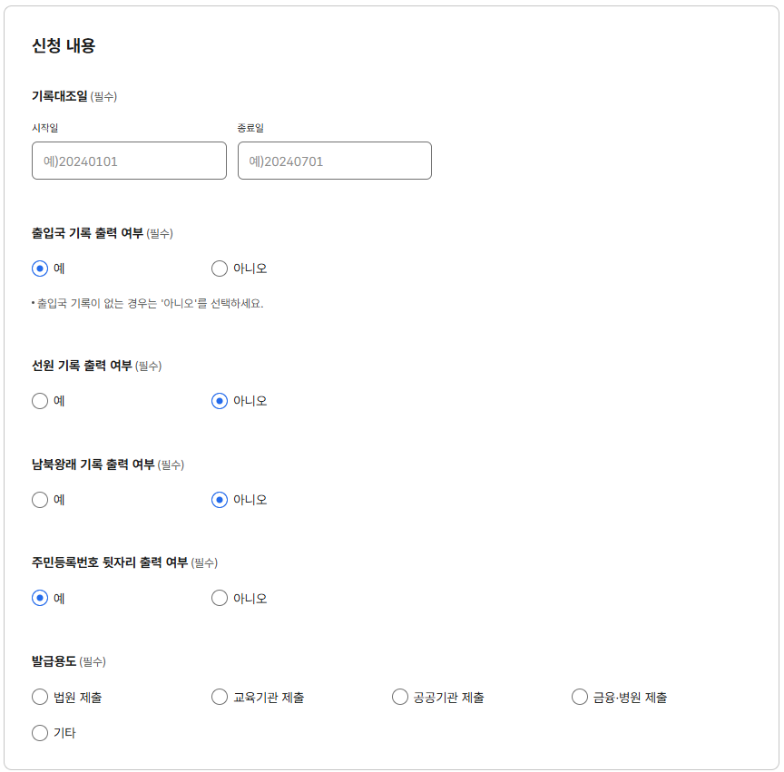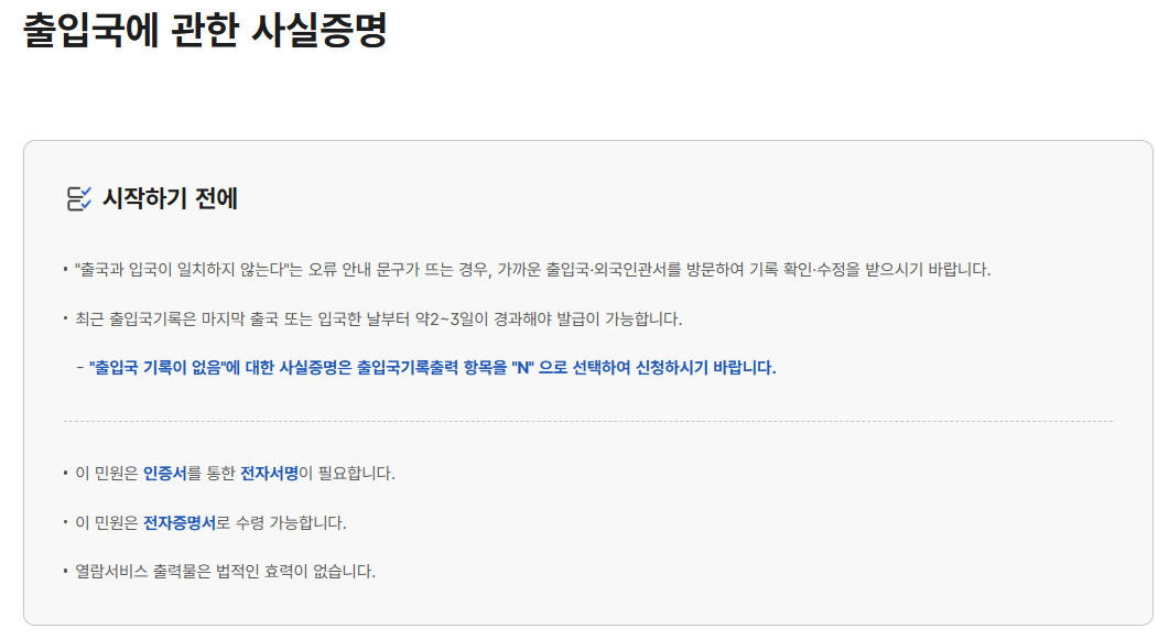 - 메인 페이지에 ‘출입국사실증명서’ 입력