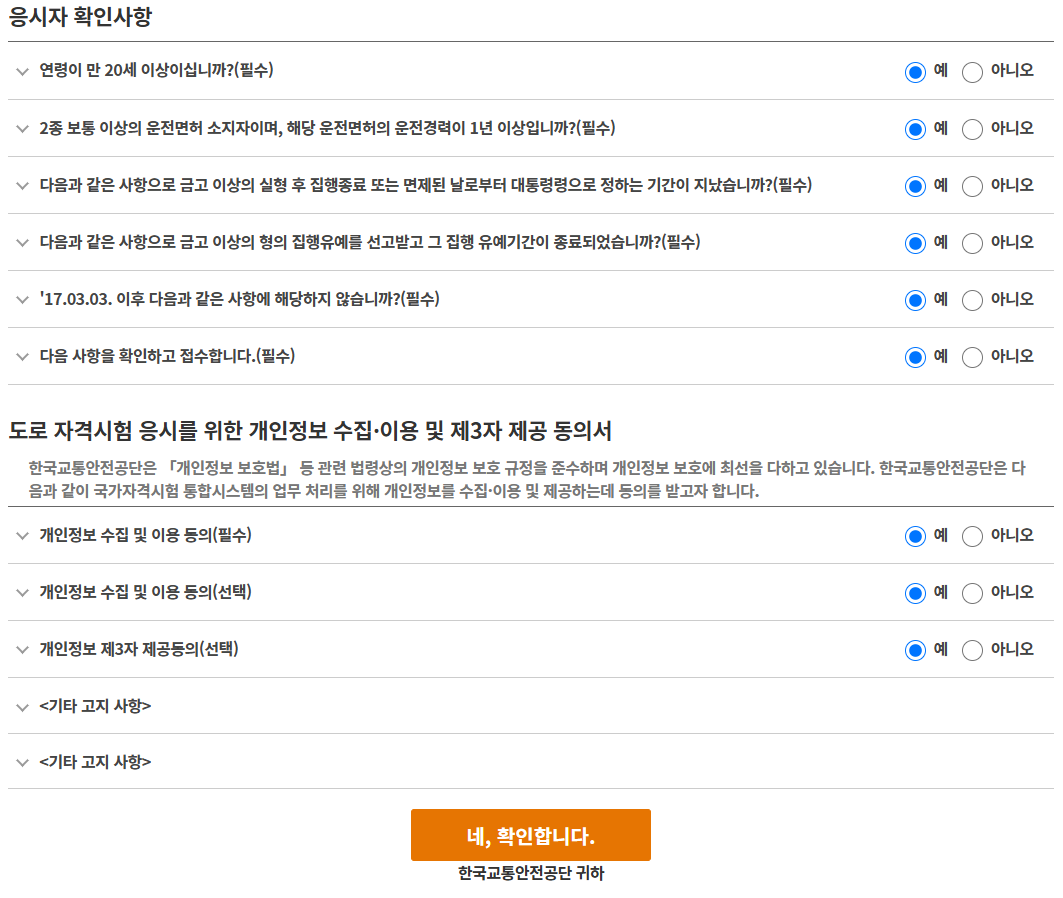 2. 응시자격을 및 확인사항을 확인하고 개인정보 수집 동의를 합니다.