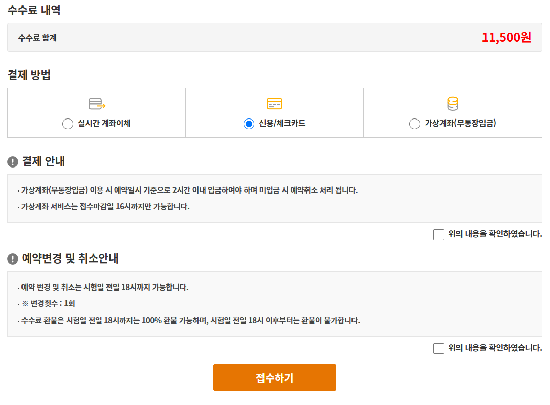- 응시 수수료: 11,500원 (인터넷 카드 결제 가능)