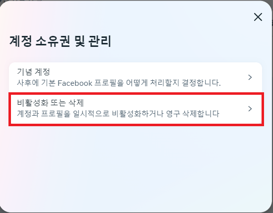 - ‘계정 소유권 및 관리’ → ‘비활성화 및 삭제’