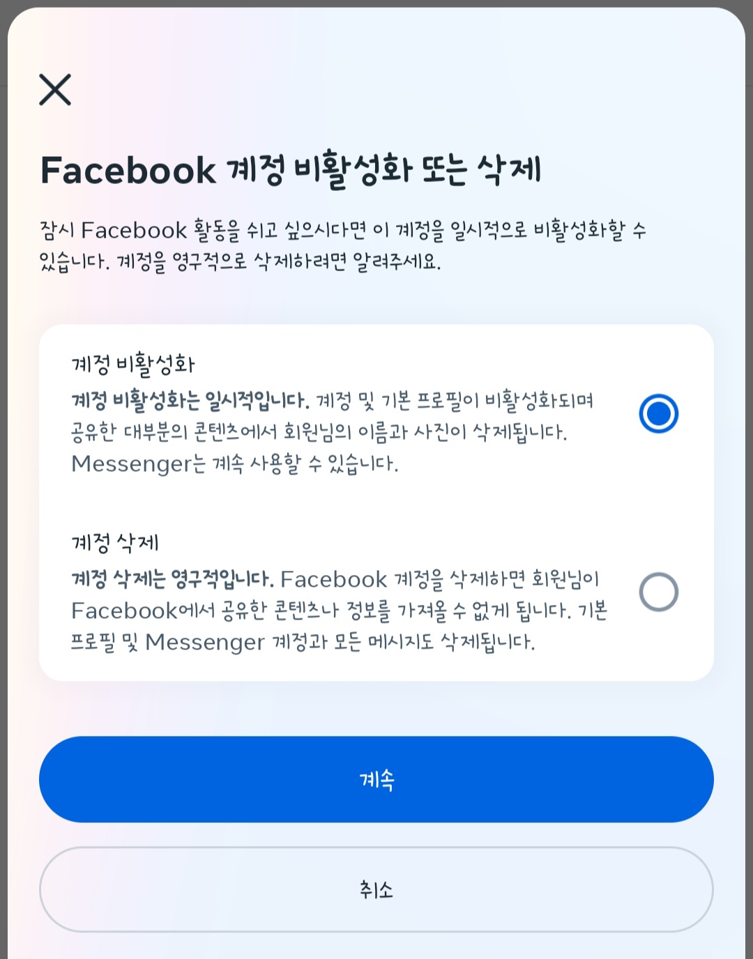 페이스북 탈퇴하는 방법: 계정 삭제 vs 계정 비활성화