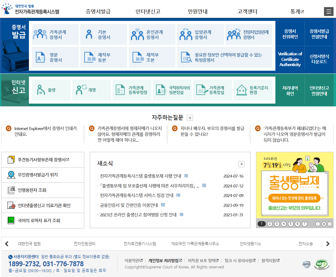 1. 전자가족관계등록시스템 접속